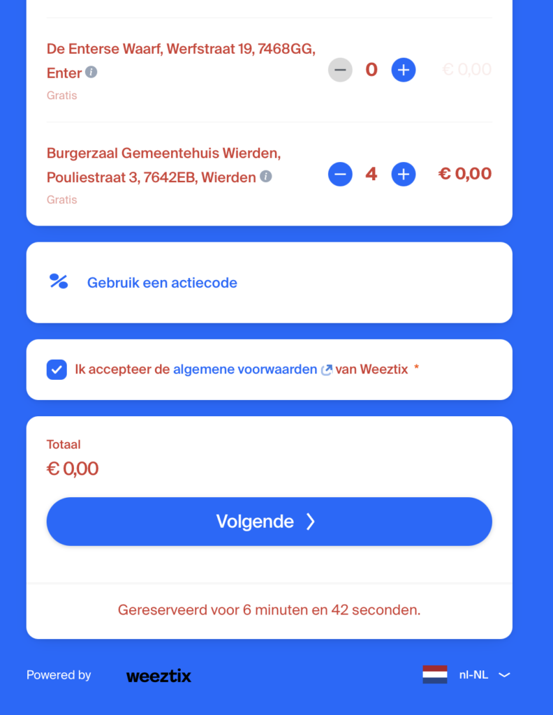 - Gaaf aan hoeveel kaartjes u voor een locatie wilt bestellen